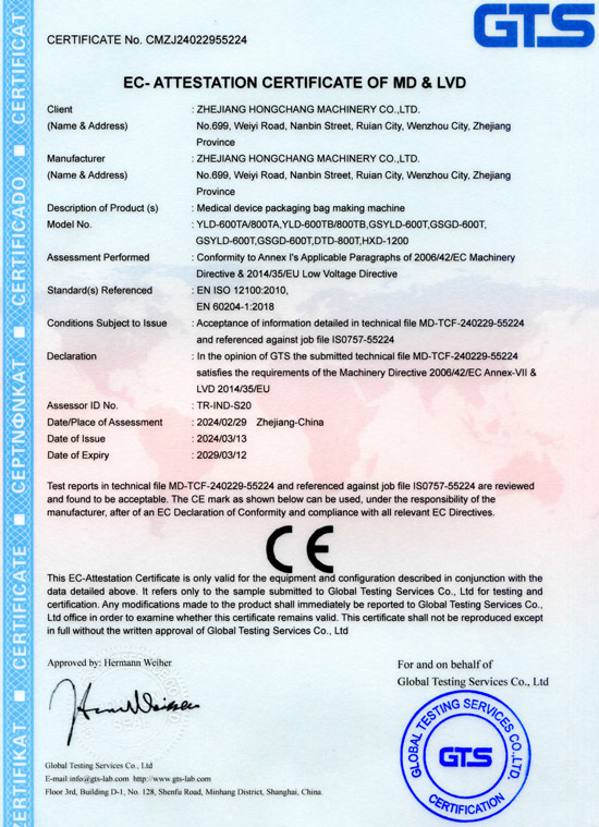 浙江鸿昌机械有限公司成立于1997年,通过了ISO9001:2015认证、产品通过CE认证,公司占地面积约35000平方米,是一家专业生产医疗器械包装制袋设备及塑料软包装印刷、复合、分切、制袋成套设备的国家高新技术企业。公司以科技为先导,并吸收国内外先进技术,开拓研制出医用乳胶手套包装机、安全套自动电检机,具有人机和谐、结构独特、性能优越、品质优良的包装机械产品。